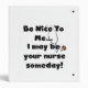Nurse text T-shirts, mugs, cards, stickers, buttons, bags, and other nursing apparel and gifts with a stethoscope and text that reads "Be nice to me...I might be your nurse someday!".