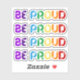 Be proud: a positive and uplifiting message written in rainbow colors.