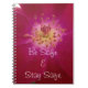 The cover features a vibrant pink/magenta background with a glowing, stylized flower graphic in yellow and orange at the centre. The core message is overlaid in flowing, elegant white script: "Be Safe & Stay Safe." The notebook is a thoughtful reminder to prioritize one's health and security, making it ideal for personal journalling, daily gratitude, or as an encouraging gift for friends and family.