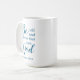 Add a name to customize my original design Christian coffee mug for a beautiful gift for the Bible believing friend. Personalize the stylish scipt mug with a name on the back. Customize this Bible scripture coffee mug with your own text if desired. "Be still and know that I am God", is a Christian Bible verse from Psalms 46:10. The trendy typography is in ocean blue. Pray and meditate on God's presence and his calm as you drink your coffee in morning quiet time. It is great Christian faith gift for the Christian mom, spiritual sister, or church bible study friend.