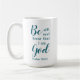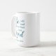 Add a name to customize my original design Christian coffee mug for a beautiful gift for the Bible believing friend. Personalize the stylish scipt mug with a name on the back. Customize this Bible scripture coffee mug with your own text if desired. "Be still and know that I am God", is a Christian Bible verse from Psalms 46:10. The trendy typography is in deep teal. Pray and meditate on God's presence and his calm as you drink your coffee in morning quiet time. It is great Christian faith gift for the Christian mom, spiritual sister, or church bible study friend.