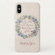 Add your name to the front of this iPhone case which has a sweet little bird is sitting on a lovely floral wreath which surrounds a scripture verse from Psalm 46:10, "Be still and know that I am God" in a loose handwritten script. Designed by Simply Scripture by Robin utilizing artwork of Lisa Glanz / Design Cuts.