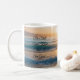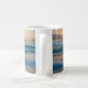 Coffee mug with sunrise over the ocean and "Be Still And Know That I Am God" written on it. AI generated.