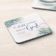 Coaster with bible verse from familiar scripture verse from Psalm 46:10, "Be Still and Know that I am God" in a modern, typographic style surrounded by lovely watercolor flowers and leaves. Designed by Simply Scripture; artwork from Design Cuts.