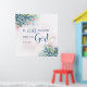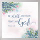 Poster with bible verse from familiar scripture verse from Psalm 46:10, "Be Still and Know that I am God" in a modern, typographic style surrounded by lovely watercolor flowers and leaves. Designed by Simply Scripture; artwork from Design Cuts.