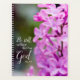 Un beau planificateur annuel d'écritures personnalisées avec une photo de fleurs lilas violettes avec le verset de la bible "...Soyez calme, et sachez que je suis Dieu..." Psaume 46:10