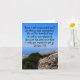 This gorgeous Bible verse greeting card shows the bold words of the scripture verse of Joshua 1:9 over a landscape photo of standing on a mountaintop and looking down to the sea and blue sky in the distance. This uplifting Christian greeting card is blank inside so you can add your own words and personalize it to any occasion. "Have I not commanded you? Be strong and courageous. Do not be terrified and do not be overwhelmed. Because the Lord your God is with you wherever you go."