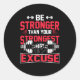 be stronger than your strongest excuse classic round sticker