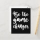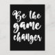 A positive message to send, Be The Game Changer is in bold white script typography on a black background. The background colour can be changed to another colour if you so wish.