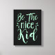 Be The Nice Kid Positive Message in Mint Green Canvas Print