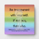 A transparent Little Boy is standing with the words of David A. Carrizales seen across him with a rainbow coloured background. The quote reminds us of the importance of being transparent with those around us as well as ourselves. Image designed by Christie Black of Creations from the Heart.