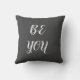This minimalist throw pillow features the empowering phrase “Be you” framed with delicate heart details.