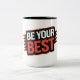 Start every day with a dose of motivation with the "Be Your Best" Two-Tone Mug. This 15 oz ceramic mug features an empowering message to remind you to always strive for greatness and embrace your personal journey. The sleek two-tone design adds a modern touch, making it the perfect cup for your morning coffee, tea, or hot cocoa.