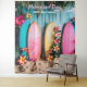 Colourful beach and surf destination backdrop with personalized text for your Wedding reception photos or corporate event. Change the text to anything you want when you order.