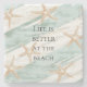 Beach Aqua Mint Starfish Stripes Wedding Stone Coaster