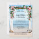 A post or after wedding party invitation featuring an image of an arbor with roses at the beach. Great for a reception only or after-the-wedding celebration with a beach or travel theme.