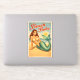 This beach babe is enjoying some time out of the water and under the sun. The beautiful vintage inspired pin-up mermaid poses while seductively flicking her jewel green tail. This fantasy twist on a classic retro pinup poster will make you smile! A perfect statement sticker for your car, cooler, water bottle, laptop, notebook and more!