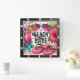 This vibrant square wall clock radiates "BEACH BABE" vibes with its playful design featuring oversized pink sunglasses, leopard print flip-flops, and a refreshing tropical drink. Adorned with delicate pink hibiscus flowers and scattered hearts, this fun and stylish timepiece is perfect for adding a touch of summer to any room.