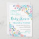 Watercolor beach baby shower invitation with sea shells and sea horses.