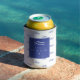 Cute can coolers for a beach themed bachelorette party getaway in a blue and white wave design. Customize with the bride-to-be's name and the location of your bachelorette party, weekend or getaway.