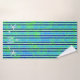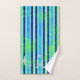 Sea glass coloured blues and greens striped bath linens for your beachy bath or shower area. Created in batik style striped shades of seafoam green and marine blues with navy and white contrasts. Accented with starfish and your monogram ready to edit in the Zazzle editor. Choose from a single item to a set. See bath mat and other matching decor items at Camp_and_Cottage on Zazzle.