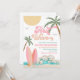 Make waves at your childs special day with this vibrant beach birthday party invitation! Featuring playful palm trees, surfboards, ocean waves, a glowing sun, and soaring birds, this design captures the fun of a seaside celebration. Perfect for a first birthday or any summer-themed party, it sets the tone for a cheerful and unforgettable gathering. Customize with your event details to create a unique keepsake that guests will love.