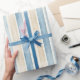 Beach Blue Cream Stripes Birthday Wrapping Paper