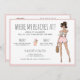 Watercolor bachelorette beach party weekend invitation features watercolor bride-to-be available in multiple hair colour options and skin shades. Event itinerary details on back of invitation. Can be customized for any event. Lingerie sizes on back for gifts or panty game.