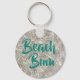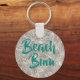 Sparkeling water over golden sand at the beach. Says"beach bum" in turquoise. In a golden sand colour covered with sparkling water.