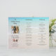 Beach scene photo template folded wedding program. Beach ceremony program to be folded into thirds after purchase. Add a special photo of the couple, which will appear on the front of long, folded programs. Easily add your wording to three sections over a sea and sand background image. Starfish dressed as a bride and groom decorate the front page. The same turquoise water and beach sand image covers the back of this paper.