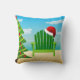 Beach chair Christmas Pillow with Santa Hat on Sandy Beach Background with Christmas Tree