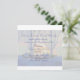 A wedding invitation in soft lavender, peach and blue featuring a sunset table with wine (or champagne) glasses. Lovely for a beach wedding. Add your information using the colour and font shown here or personalize it with a huge selection of font styles and colours for a one of a kind invitation.