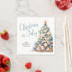 Celebrate the season with this festive and beachy party napkin, perfect for a Christmas in July gathering. The design features a whimsical Christmas tree made of beach shells, starfish, and coral on the right side, adding a fun coastal touch to your table setup. The overall colour palette includes shades of teal blue and tan, creating a relaxed, summery vibe.