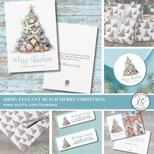 Elegant Coastal Shell Beach Merry Christmas TreeDesigned by JJ Marie