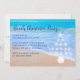 Beach Christmas party invitation. Ocean beach background with a starfish and sand dollar "tree", the design is for those who celebrate the holidays in a warm climate. Ocean waves on the back of the paper.