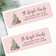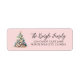 Beach Christmas Tree Return Address Label. This festive return address label features a charming Christmas tree crafted from seashells and starfish, topped with a starfish for a coastal holiday touch. The design rests on a sandy base against a light blush pink background, creating a soft, beachy feel. On the right, your name and address appear in clean black script and serif fonts for a simple yet elegant look. Perfect for Christmas cards or holiday invitations, this design adds a subtle seaside charm for anyone who loves tropical or coastal holiday style.