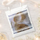 This beach design features seashell clams. Beach themed wedding design with a clams background and white text. White lines creating ribbons are positioned above and below the text. This is the perfect beach destination wedding design ideal for all seasons. Elegant beach wedding favour bag design with modern elements. Matching wedding invitations and other stationery items are also available.