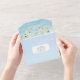 Beautiful watercolor illustrated all-in-1 beach coastal nautical themed wedding invitation with wedding details, tear off rsvp with menu options, self addressed.