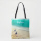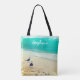 Create a custom personalized tote bag on beach art design with blue ocean and sea gulls in watercolor style. Art copyright Ann Powell all rights reserved.