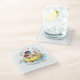 Beach Day Cartoon Character on Inflatable Ring Glass Coaster