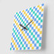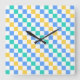 Beach day diagonal checkerboard pattern square wall clock