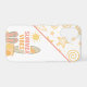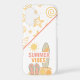 A playful summer design featuring a surfboard, flip flops, seashells, a bright sun, and the phrase "Summer Vibes" over a sandy beach.