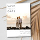 Beach destination save the date cards are for the couple who can't wait to share their wedding date with their family and friends. With an elegant photo minimalist design that is customized with your photo, names, wedding date and location.