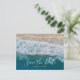Announce your celebration with these beach destination wedding save the date postcards, designed to capture the relaxed beauty of a tropical getaway. Featuring warm ocean waves gently lapping against a sandy beach, this design sets a calm, romantic tone for your upcoming wedding.