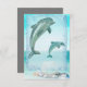 Tropical beach dolphins featuring a nautical watercolor dolphins with seashells, glass bowl and paper scroll on ocean scene background.