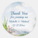 Pretty stickers for a unique beach themed wedding. Decorate favour boxes or bags, edit them as thank you stickers etc. Printed with a dreamy scenic beach and surf background with soft botanical accents. Formatted text all ready for you to edit with your own details in the easy Zazzle editor. Coordinates with many other items in our Beach Dune Romance design collection. Created in part with commercial use licensed purchased artwork by Andjelina's Designs.