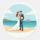 Includes 20 small stickers on one sheet. Add a touch of romance to your messages with this charming sticker of a bride and groom on a beach, gazing at a cruise ship in the distance.