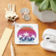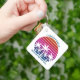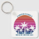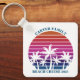 Cool matching family vacation keychains for family keepsake after an island cruise. Features beautiful palm trees in front of a pretty pink beach sunset. Perfect custom gifts for your summer trip to the sea.