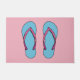 An illustration of a pair of pink and blue beach flip flops. It's summertime! Let's take a break and have some fun under the sun. Aren't you excited to prepare all your stuff for vacation? Don't forget your flip flops.