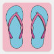 An illustration of a pair of pink and blue beach flip flops. It's summertime! Let's take a break and have some fun under the sun. Aren't you excited to prepare all your stuff for vacation? Don't forget your flip flops.